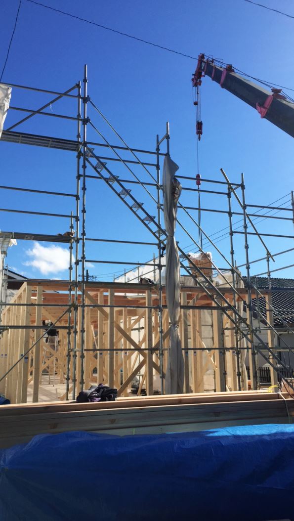 本日はお天気にもめぐまれ安曇野市豊科にて 無事上棟を行う事が出来ました。