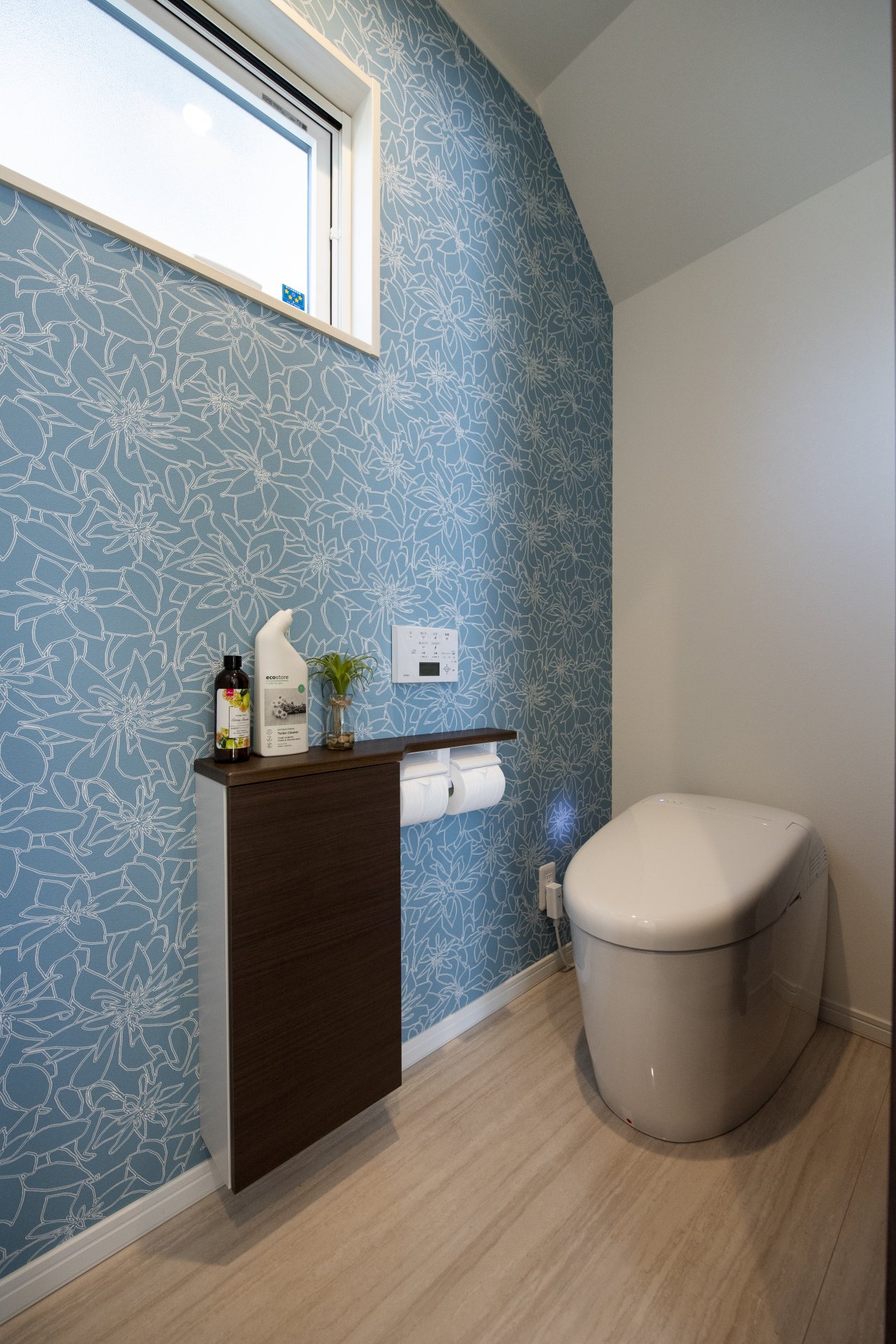 洗面室、トイレなど小さなお部屋は柄物等を貼ることも多いです。