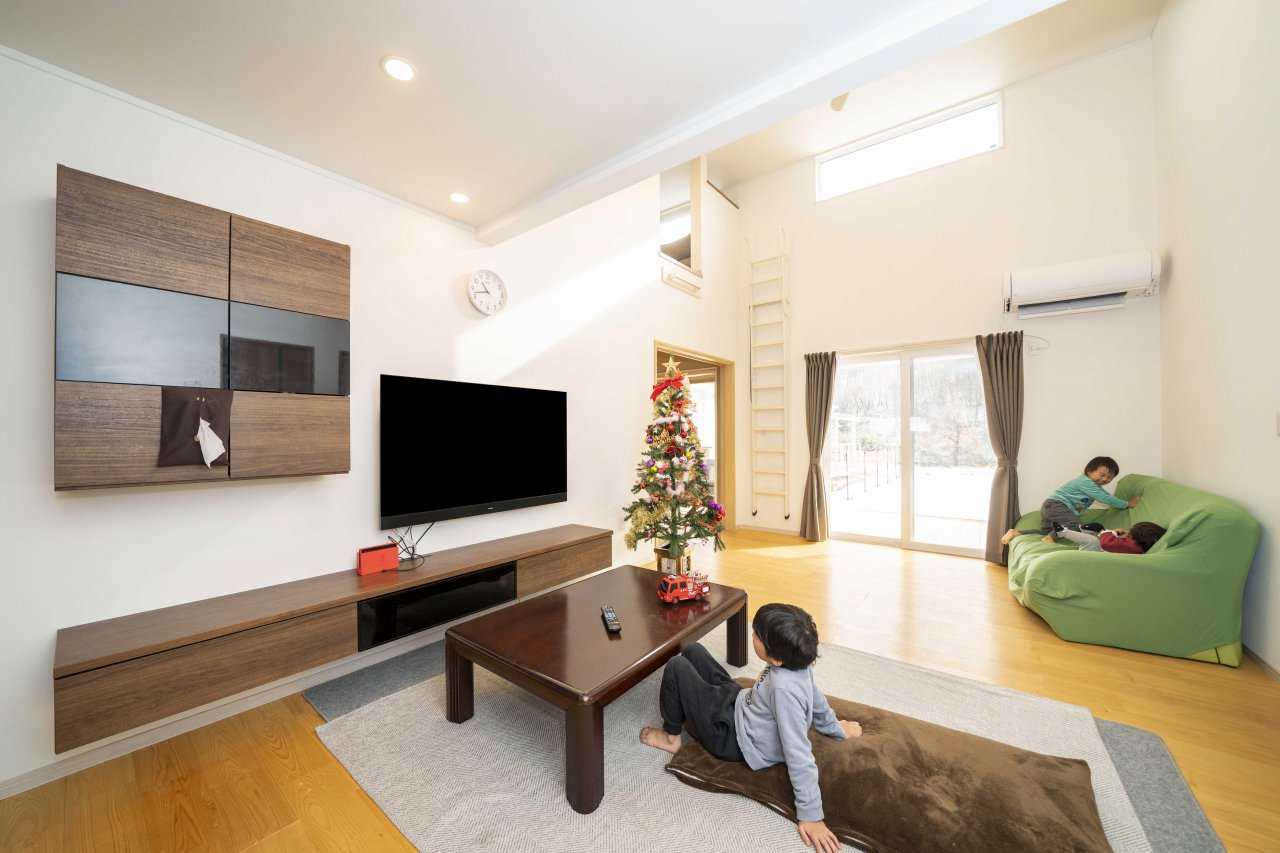 これにより平面だけでなく、タテの広がりを生み出し、伸びやかで開放感を楽しめる室内となりました。