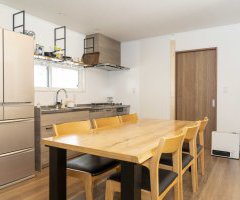 リビングとキッチンがひとつの空間として存在する非常に開放的な空間に仕上がりました。
