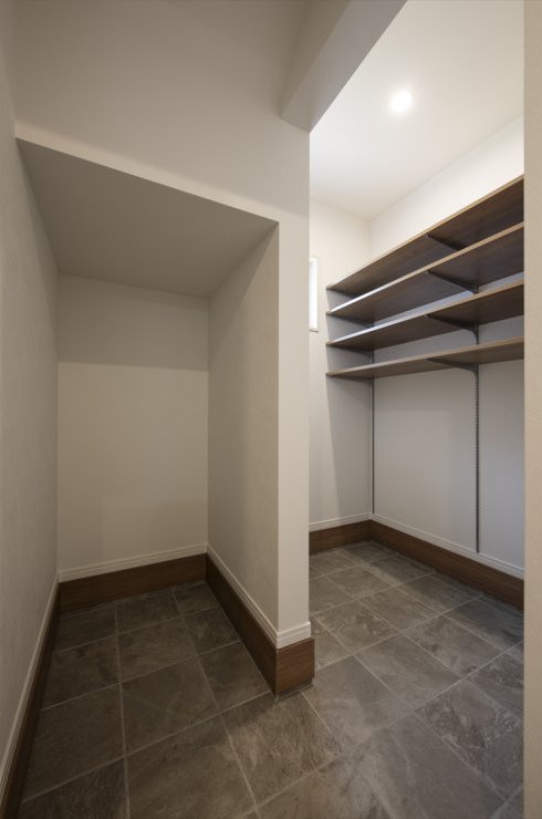 半間分の奥行の収納と、階段下のスペースを有効活用し、収納もしっかりと確保しました。 -